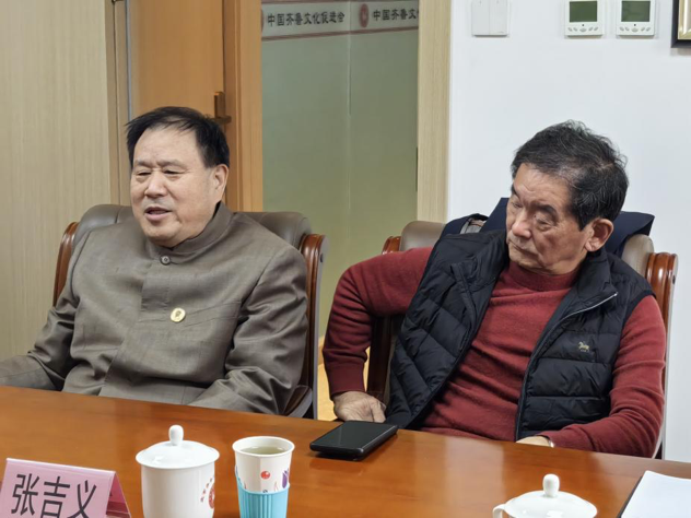 北京齐鲁文化促进会会长李明,当代著名词作家、国家一级编剧、武警总部政治部文艺创作室原主任张吉义少将,武警文工团国家一级作曲家、北京齐鲁文化促进会文艺创演部主任郭晓天,以及北京齐鲁文化促进会秘书长薛晓红、常务副秘书长兼规划发展部主任郭大生、综合办公室主任孙建斌、事业发展部主任李东雷等共同出席。同时,中国教育春节联欢晚会总制片人陈小萌,中国教育春节联欢晚会组织委员会副秘书长骆西海,中国智慧工程研究会副秘书长刘浩出席了本次会议。