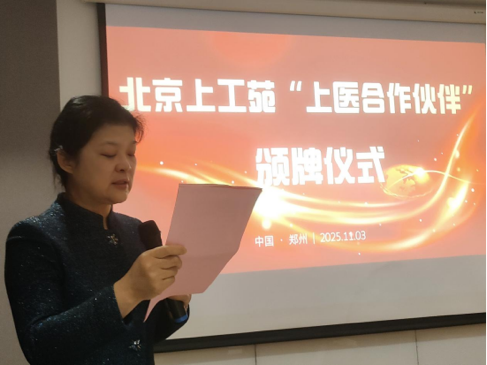 11月2日下午,首场授牌仪式在驻马店经济开发区金河办事处通达社区卫生服务站举行。薛晓红在致辞中表示,“上医合作伙伴”计划是北京齐鲁文化促进会响应“健康中国”战略、推动上医文化精神与现代社区健康服务相结合的重要举措。她强调,该计划旨在通过资源整合与文化赋能,支持基层医疗机构提升服务能力,弘扬“治未病”的中医智慧,让优质健康服务惠及更多群众。