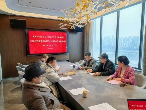1月22日,薛晓红一行与重庆市山东商会会长巩书凯,中国齐鲁文化促进会副会长、重庆市齐鲁文化促进会终身名誉会长李献明,重庆市齐鲁文化促进会副会长王宁、王玺钧、秘书长徐伟,重庆市鲁渝协作促进会会长徐海东等各界人士座谈,围绕电影《感恩号·大篷车》宣发事宜深入交流。与会各方对影片的文化价值与社会意义高度认可,对我会策划打造这部孝道文化精品表示高度重视,并明确表态将全力支持影片宣发工作。经多方协商,拟定于2月2日在重庆三会年会上开展影片展示与投资对接活动,进一步推动影片宣发工作落地落实,实现文化传播与产业发展的双向赋能。